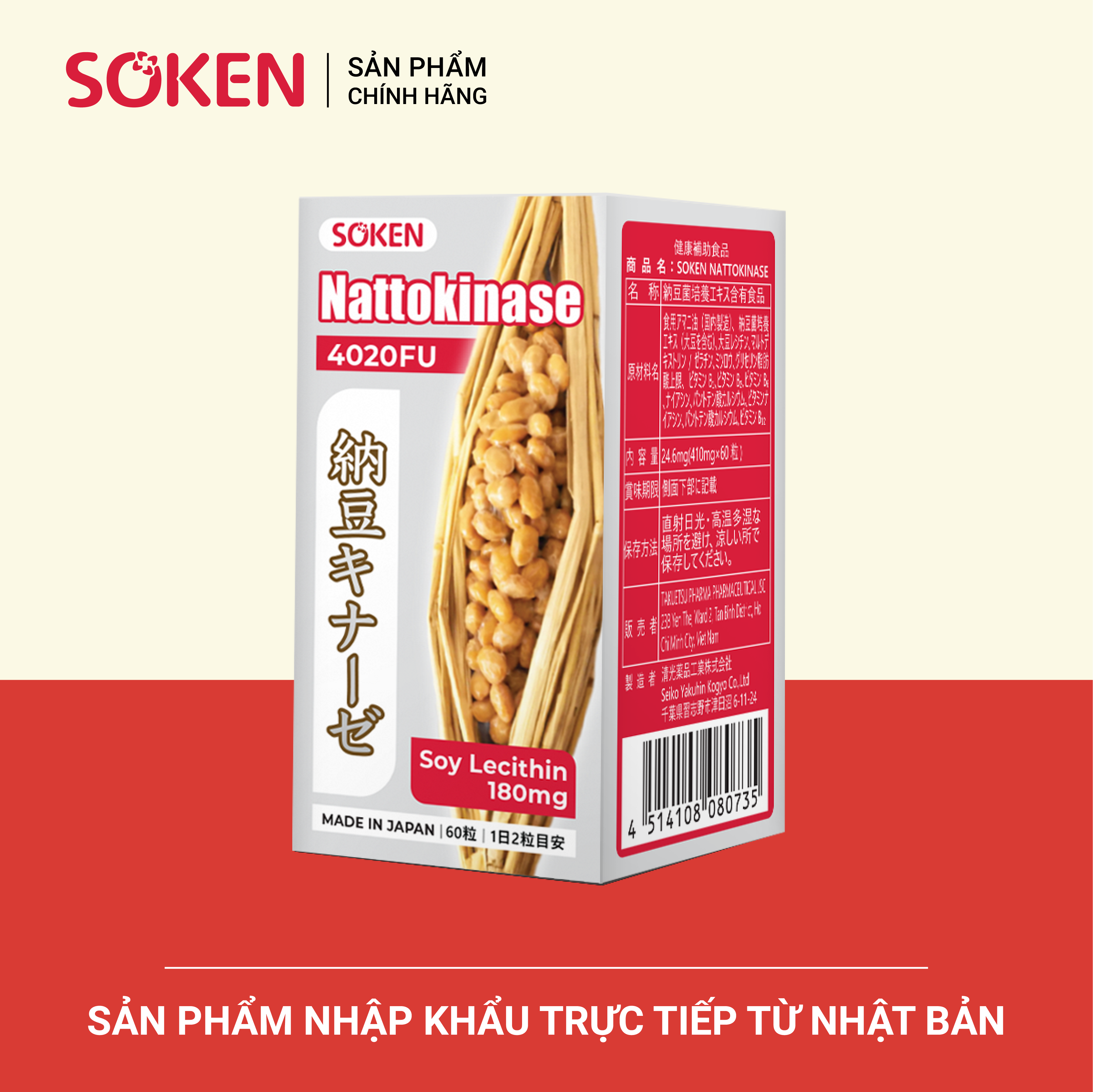 VIÊN UỐNG HỖ TRỢ PHÒNG NGỪA ĐỘT QUỴ – GIẢM MỠ MÁU SOKEN NATTOKINASE 4020FU Nhật Bản chứa hàm lượng Nattokinase đạt chuẩn khuyến nghị, giúp khơi thông dòng máu, làm tan cục máu đông, giải quyết tình trạng hoa mắt, chóng mặt, đau đầu do thiếu máu não. Từ đó làm giảm nguy cơ biến chứng của bệnh tiểu đường, tăng huyết áp, xơ vữa, phòng ngừa nhồi máu cơ tim và đột quỵ.